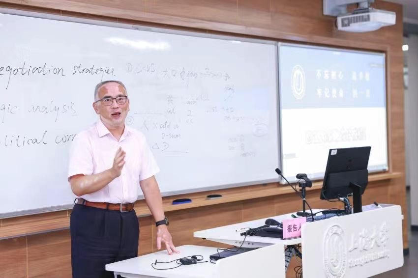 教学展示后,单娟老师分别从赛制安排、决赛安排、赛前准备三个方面讲解了“第十四届校青教赛决赛安排与赛前准备事项”。单老师在讲解过程中还结合自身的参赛体会同大家分享了教学大纲、教学设计以及教学阶段等注意事项。最后,教务部副部长、教发中心主任辛明军进行总结发言。他以“感谢、希望和期待”三个关键词表达了感谢,对青年教师提出了希望和期望。他希望青年教师思考如何进行研究型挑战性设计,进而让自己的授课行云流水等等。最后,他期望在温暖的成长环境下,青年教师可以尽快从“青椒”成长为“老辣椒”。