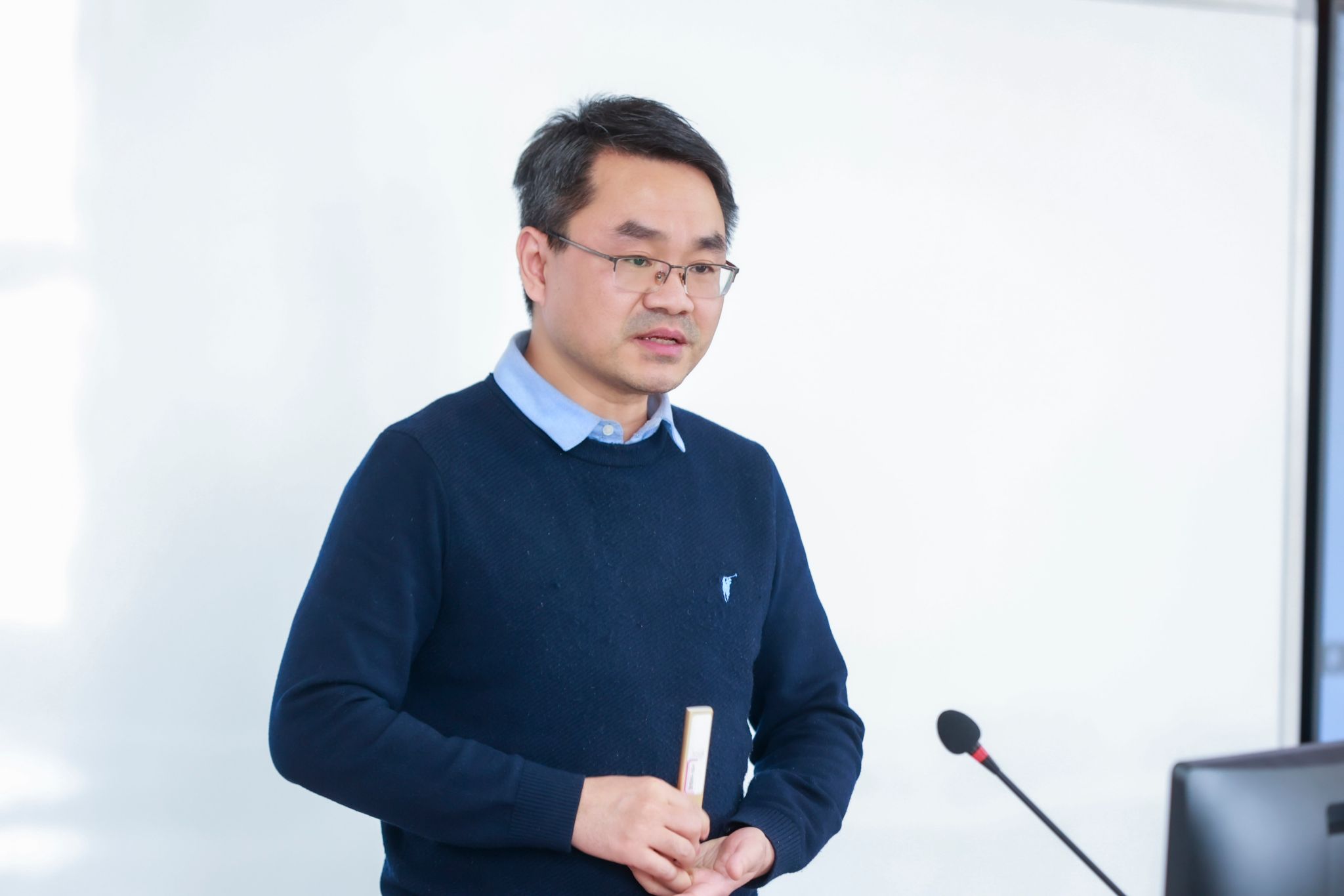首先,辛老师对两位获奖选手进行了简要介绍,并介绍了去年他们备战创新赛的经历。接下来,在教学展示环节,宋亦诚老师以“‘思研探究,创新引领,多元协同’的《工程力学》课程教学改革与实践”为主题进行了经验分享。宋老师指出,在教学过程中应该始终关注学生端反馈,及时鼓励学生完成自学,这是引导学生创新的关键所在。同时,教师要在教学中结合学习通等新技术,完成混合式教学,最终实现产教融合、科教融汇的效果。最后,他提到教学类比赛源于课堂教学又高于课堂教学,希望青年教师有条件多多参与教学竞赛,实现能力成长。他也祝愿今年参赛的选手能认真备战,在市赛现场比赛环节取得好成绩。